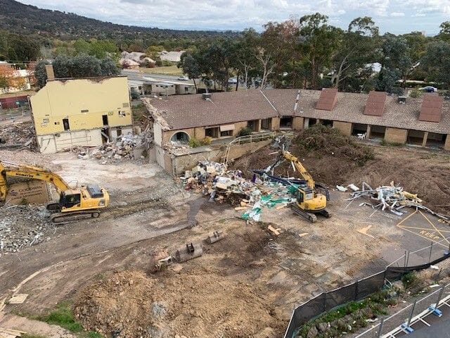 Farrer redevelopment Stage-2 is in full swing. Demolition of George Sautelle House and Units 24-41 is now complete and earthworks for the construction of the next blocks have started.