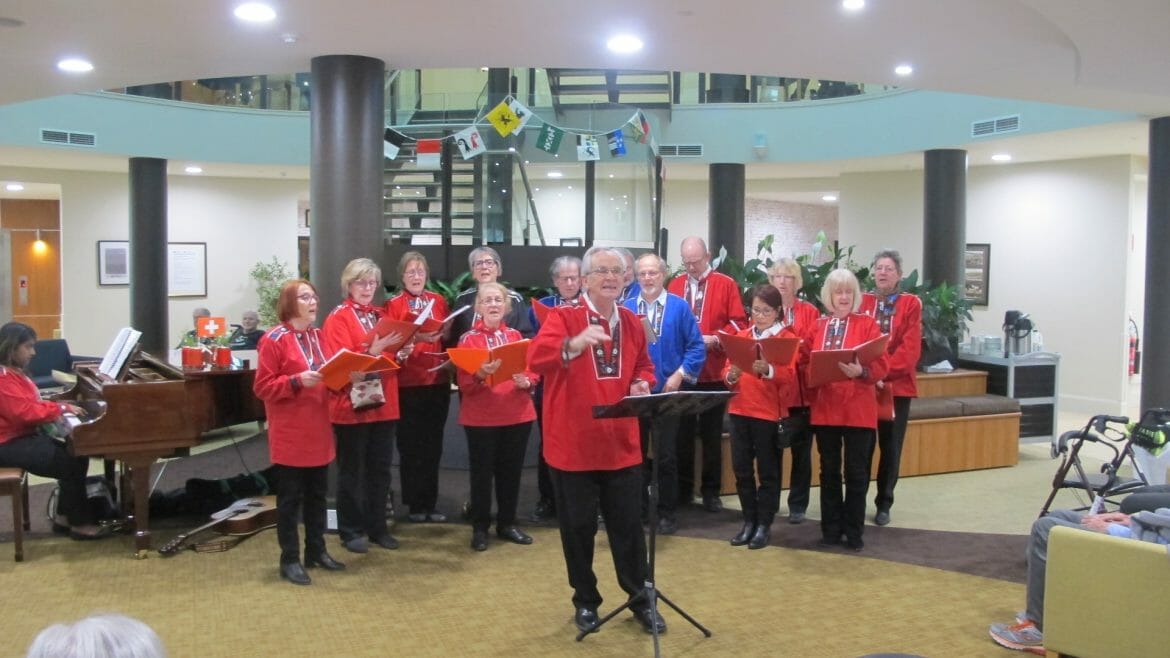 There was a special performance by the Canberra Swiss Choir that Tony was once associated with. Both he and his wife, Eva, couldn’t hold back their tears as the choir sang “A Beetle in the Farm”, which Tony had taught them when he was part of the choir. To cap off the event, Tony rang a cowbell in typical Swiss fashion, and was presented with a bouquet by our team, before joining residents for an afternoon tea.